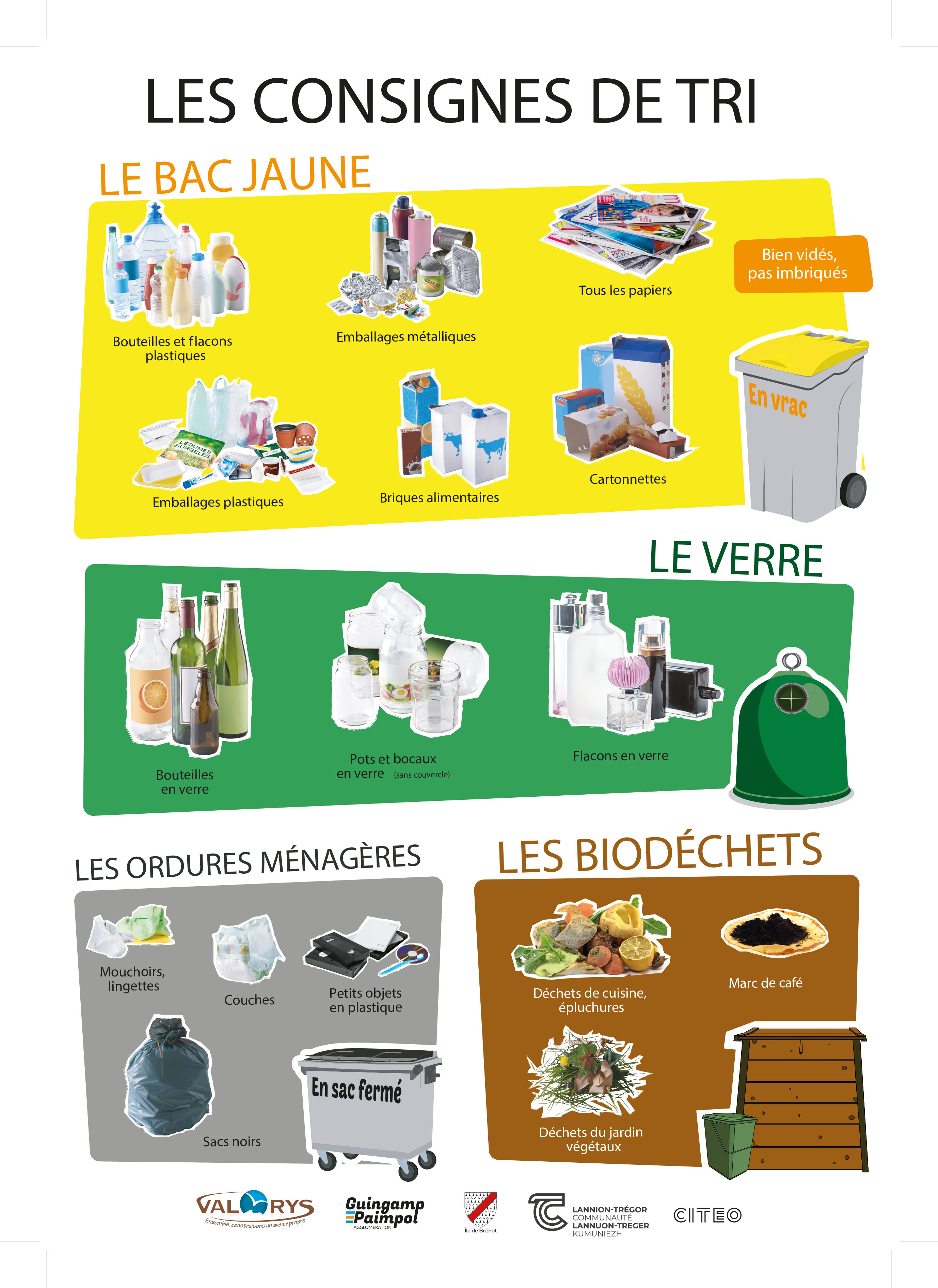 Consignes de tri Grand public Les consignes de tri 1 document Publié le 4 mai 2021 Les consignes de tri sont éditées régulièrement pour permettre aux habitants de connaître les bons gestes de tri. Un document indispensable. Les consignes de tri PDF - 181.64 Ko Télécharger Precedent Retour à la liste Suivant